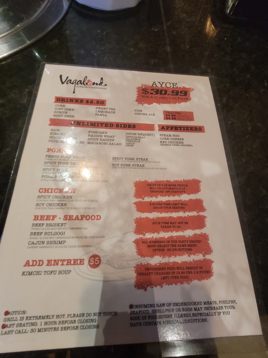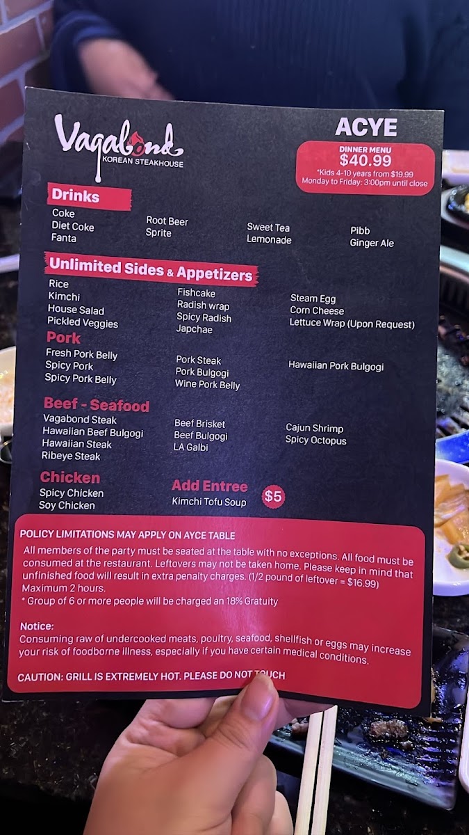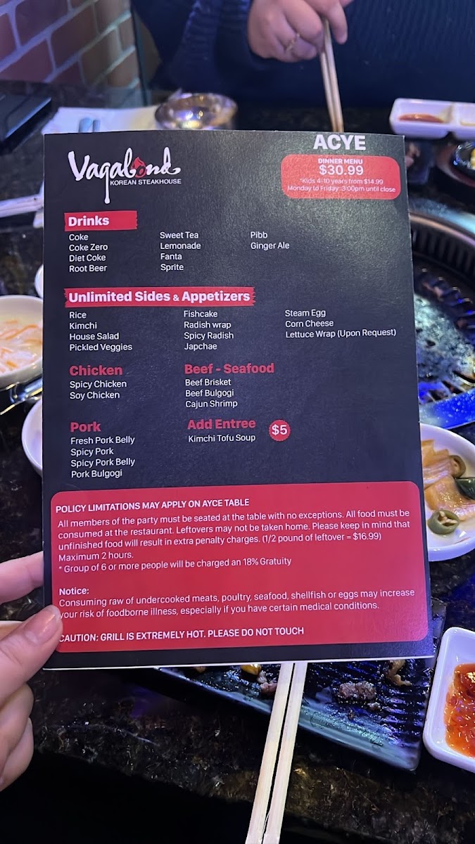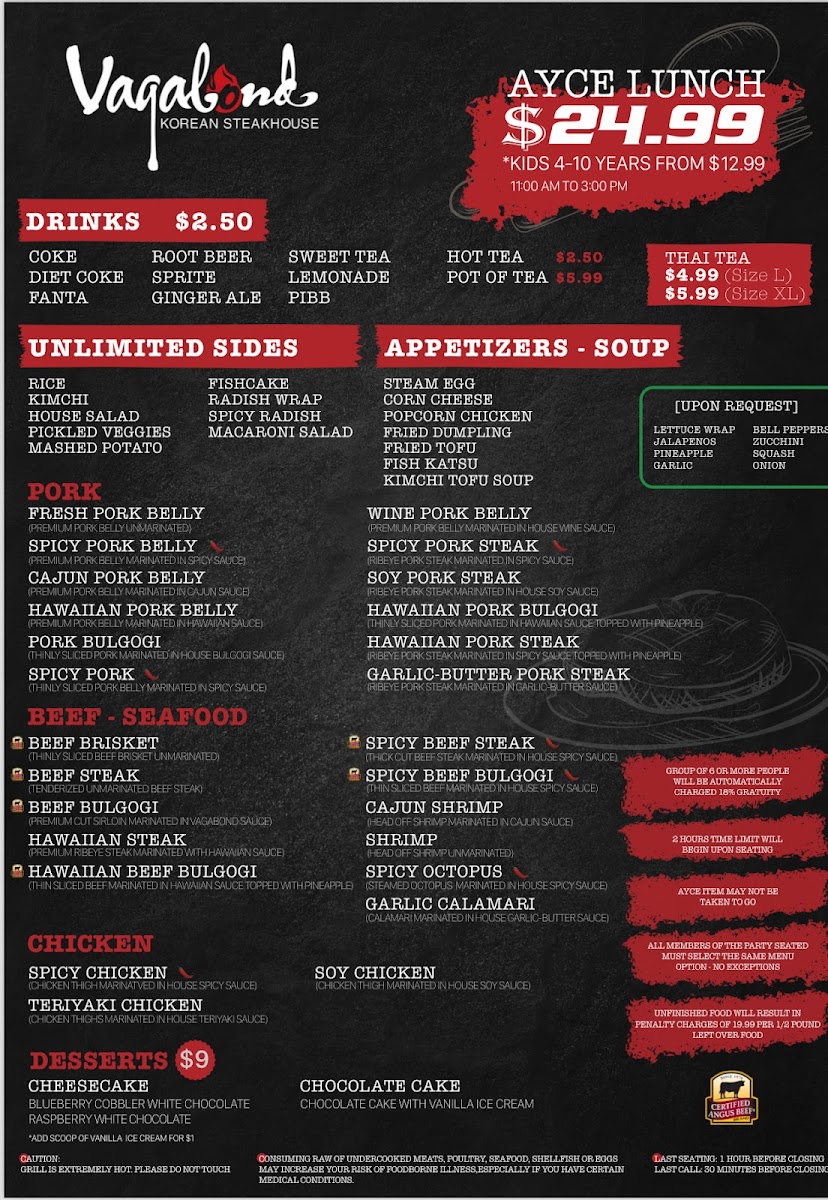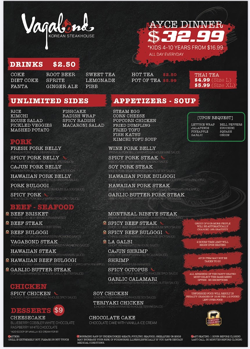 Vagabond Korean Steakhouse Menu (2025 Update)